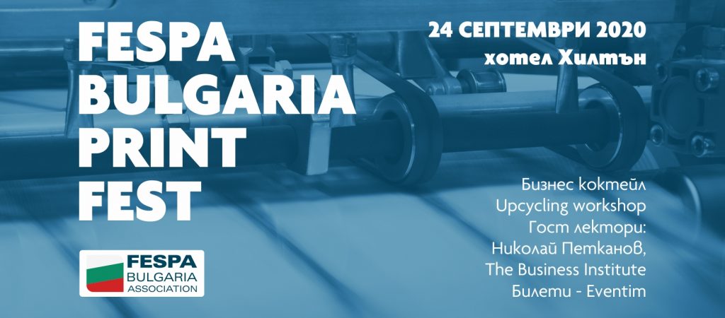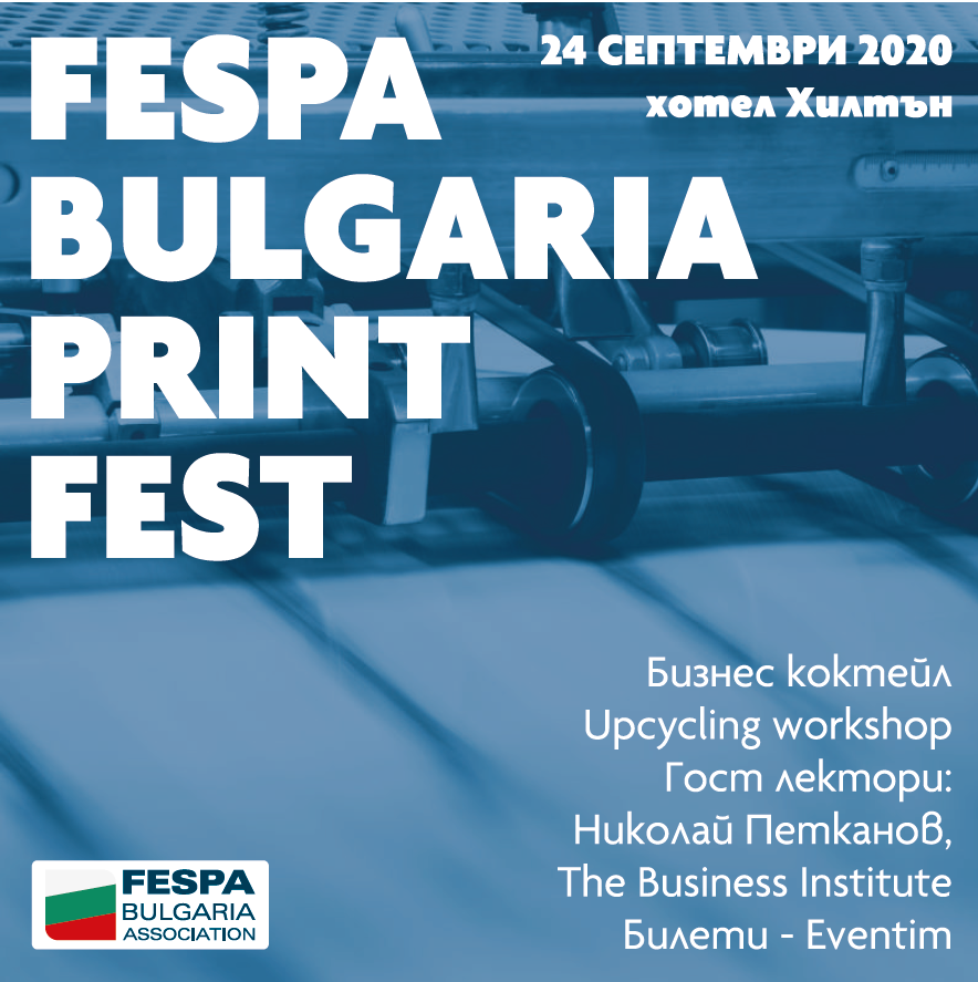 Феспа България има удоволствието да ви покани на Fespa Bulgaria Print Fest - единственото бизнес събитие на рекламните производители за 2020г. Ден, в който можете да се срещнете с доставчици и производители на печатни продукти и услуги. Вечерна програма от лекции и бизнес коктейл, за да завършим единственото събитие на рекламни производители за 2020г.