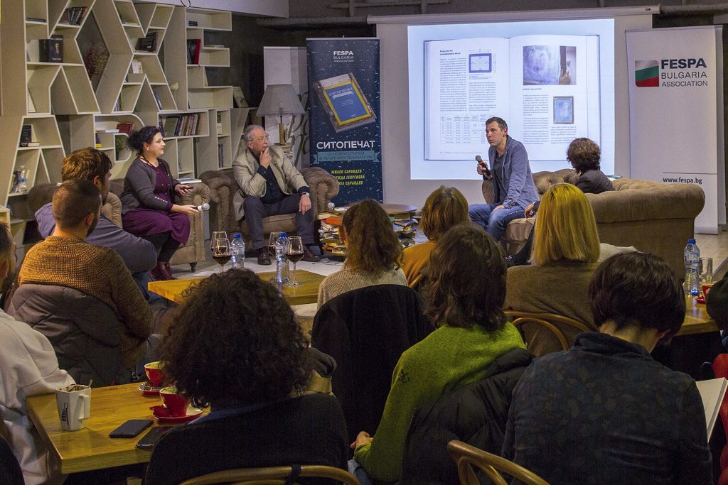 На 28 февруари в Литературен клуб “Перото” се проведе представянето на книгата “Ситопечат. Основни стъпки в печатната технология” с издател Сдружение “Феспа България”. Организаторите на събитието и авторите на наръчника Милен Сарандев, Надежда Георгиева и Даниел Сарандев разказаха на публиката какво да очакват от изданието, какъв е бил процеса на създаване и защо ситопечатната технология притежава толкова уникални особености.